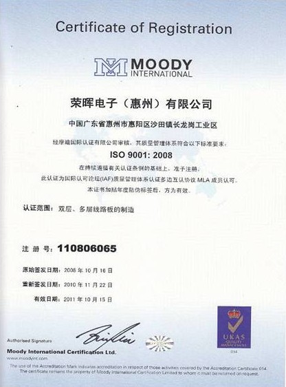 于2004 通过ISO9001:2008质量管理体系认证;