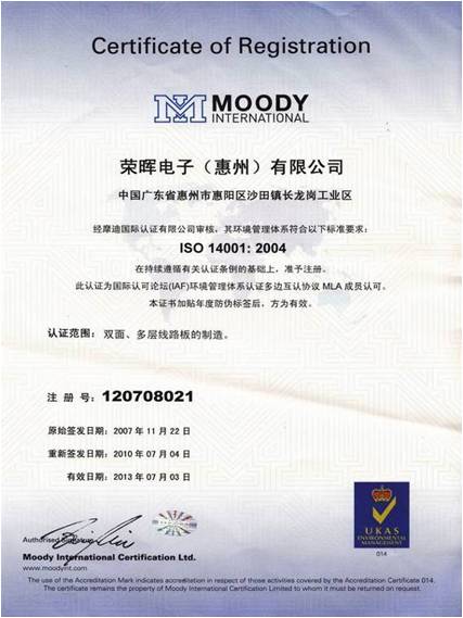 于2007.7 通过ISO14001:2004环境管理体系认证;